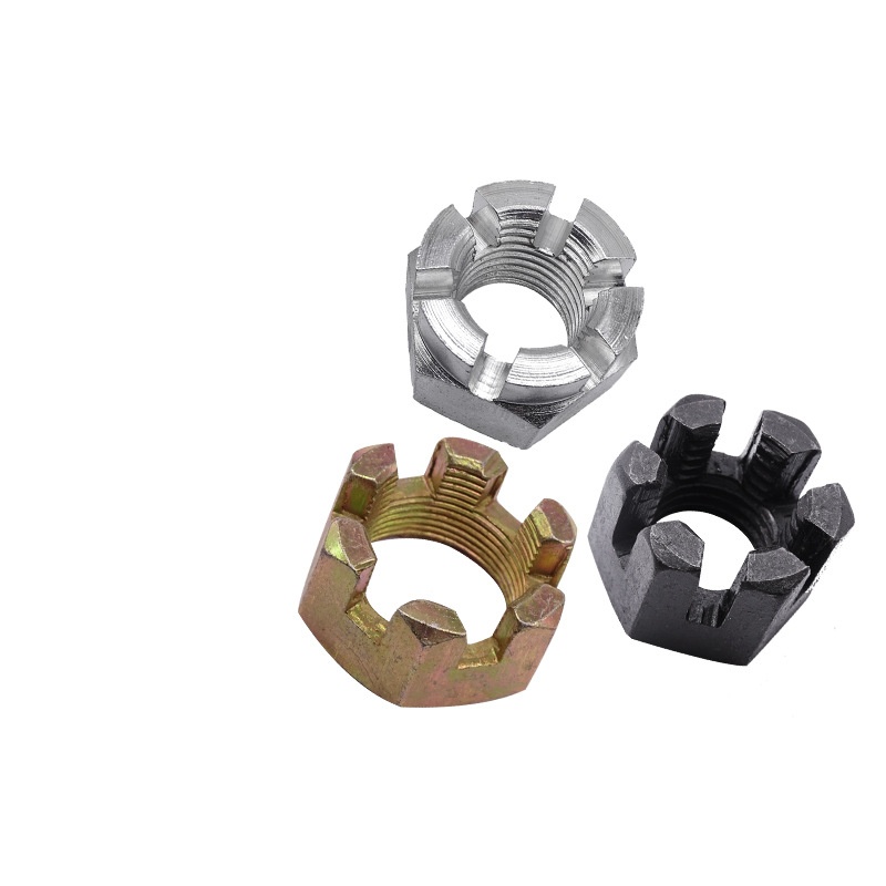 슬롯이 장착 된 높은 토크 크라운 너트는 진동이나 비틀려고하는 경우에도 제자리에 고정되어 있는지 확인 해야하는 중요한 작업에 사용되는 특별한 패스너입니다. 일반 육각 너트처럼 보이지만 상단에는 슬롯이 잘린 원통형 크라운 부분이 있습니다. 이 슬롯을 사용하면 코터 핀이나 안전 와이어를 사용하여 단단히 고정시킬 수 있습니다. 이 견과류는 일반 견과류가 느슨해 질 때 상태를 유지하므로, 특히 안전이 중요한 항공 우주, 자동차 제작 및 중장비에서 힘든 기계 설정에 매우 필요합니다.