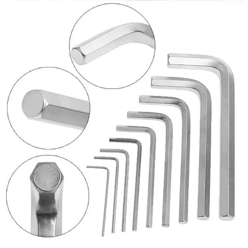 없어서는 안될 육각형 렌치는 일반적으로 여러 일반적인 유형의 강철로 만들어집니다 : 고 탄소강, 크롬-바나듐 강철 또는 스테인레스 스틸.