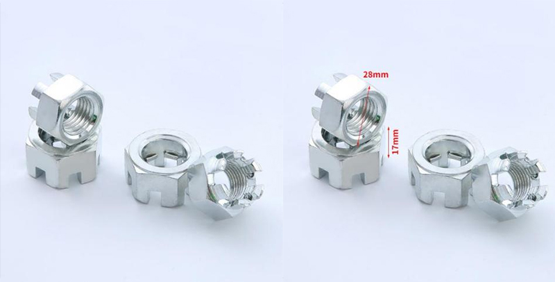 재료는 아연 도금 탄소강 또는 316 스테인리스 스틸 일 수 있습니다.메트릭 슬롯 헥스 너트소금 스프레이, 산 및 알칼리에 내성이 있으며 화학 파이프 라인 및 해외 플랫폼과 같은 부식성이 높은 환경에 적합합니다. Xiaoguo®는 실외 장비의 서비스 수명을 연장하기 위해 Dacromet 코팅 옵션을 제공합니다.