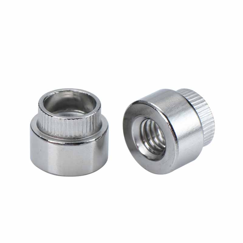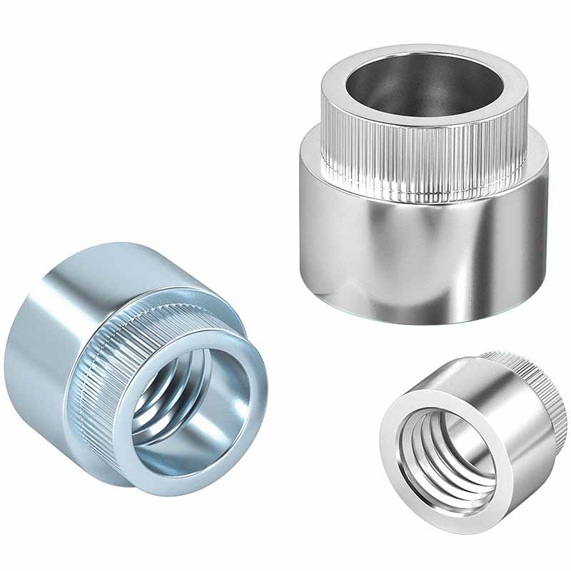 한편, 둥근 너트 부분에는 내부에 일반 스레드가 있습니다. 큰 크기가 든 플랜지는 두 가지 작업을 수행합니다. 압착 힘을 퍼뜨립니다. 얇은 재료를 찌르지 않고, 작은 융기 부분이 표면에 물린 채로 볼트를 돌리면 전체 둥근 리벳 부시가 회전하는 것을 막습니다.