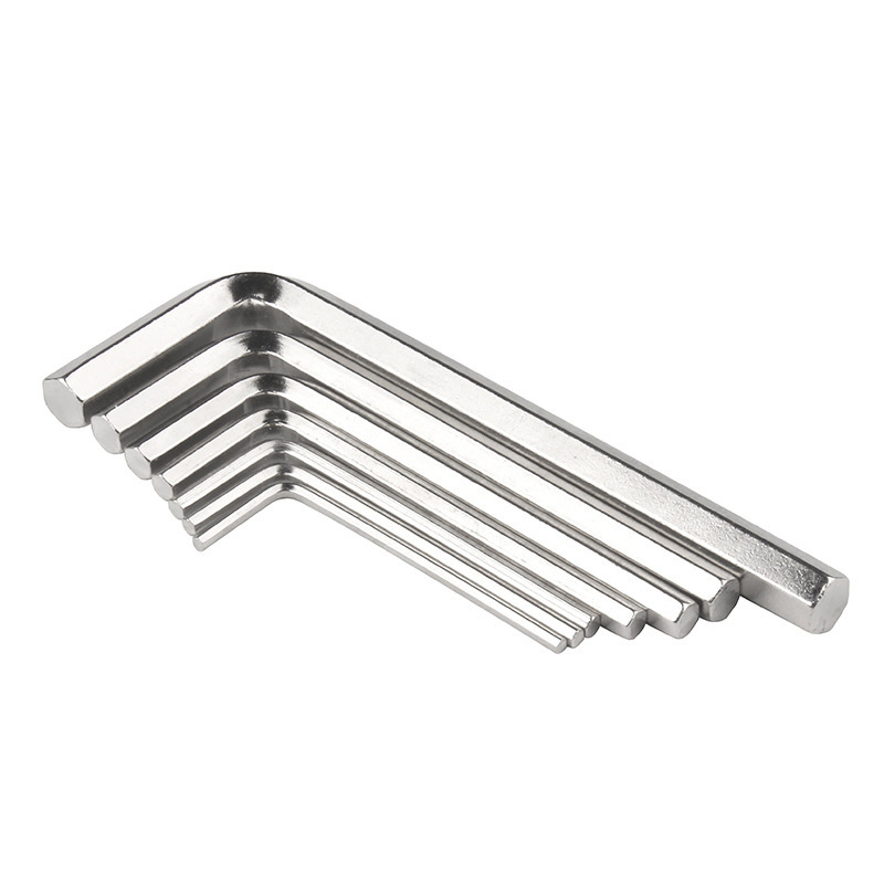 이 표준 사용자 친화적 인 육각형 렌치는 L의 모양입니다. 디자인은 간단하지만 잘 작동합니다. 힘의 두 지점을 제공하며 필요한 토크에 따라 선택할 수 있습니다. 긴면은 패스너에 더 큰 토크를 적용하는 데 사용될 수 있지만, 짧은면은 제한된 공간에서 빠른 조임 또는 작동에 적합합니다. 고품질 렌치는 날카 롭고 부드러운 모서리로 끝을 정확하게 자르므로 미끄러지지 않고 나사 헤드에 완벽하게 맞출 수 있습니다. 많은 새로운 렌치에는 긴 팔에 편안한 플라스틱 또는 고무 핸들이 있습니다. 이로 인해 오랜 사용 중에 쉽게 잡고 제어 할 수 있습니다.